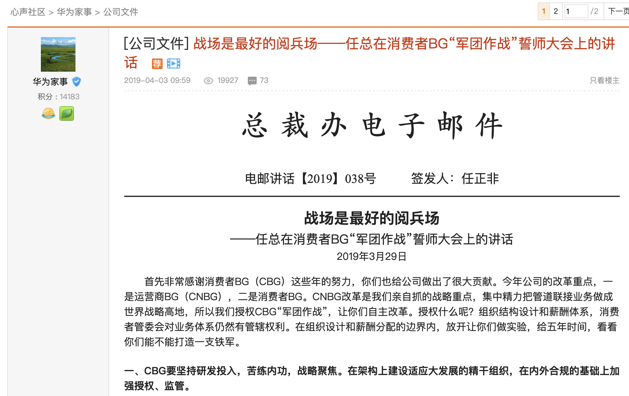 ——任總在消費者BG“軍團作戰”誓師大會上的講話