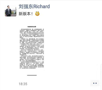 京東還遠談不上成功,我們的國家還不是世界上最強大的國家,我們還有很多貧困人口需要幫助!天上掉不下餡餅,我們只有拼搏奮進!才能讓這個世界 更加美好!京東永遠不會強制員工995或者996,但是每一個京東人都必須具備拼搏精神! 我現在無法再像創業初期那樣拼命工作了!但是以我的體質,做到811648,(周一到周六,早8點工 作到晚11點,周日工作8個小時,每個月休假兩天, 每年也會休一次長假)完全沒有問題!我享受拼搏的快感! 我要找到一幫愿意為理想而一起拼的兄弟們!并讓他們的日子過得愈來愈好!