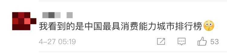 還有網友表示,這個榜單其實是中國最具消費能力城市排行榜。