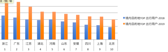 與此同時,浙江、廣東、江蘇、湖北、河南成為游客最多的境內目的地。云南、廣東和甘肅的游客增速最快。