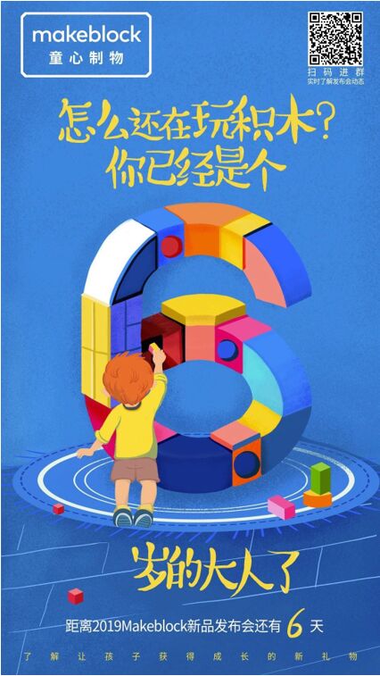 不難看出,此次童心制物(Makeblock)即將推出的新品不僅是孩子成長路上的“一劑良藥”,對于飽受“起跑線焦慮”困擾的家長們也有很強的治愈效果。根據(jù)海報的倒計時推測,童心制物(Makeblock)新品將于5月21日在北京發(fā)布,這或許是科技教育界一顆最新的彩蛋,值得期待!