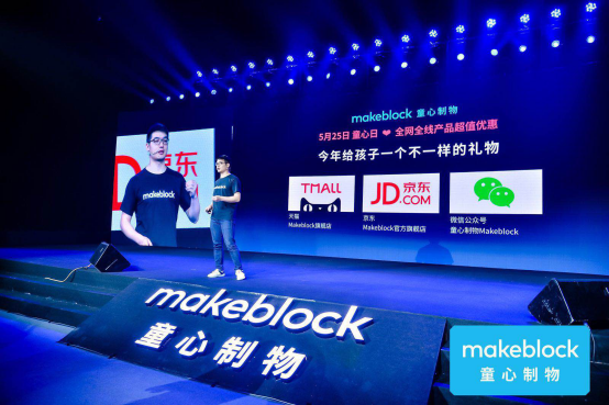 會上,童心制物(Makeblock)首次宣布將5月25日“童心日”設為童心制物(Makeblock)品牌日。并且在“童心日”當天,童心制物(Makeblock)的全線產品將在所有線上渠道推出超值優惠的讓利政策,給今年孩子的兒童節一個不一樣的禮物,與此同時,童心制物(Makeblock)旗下機器人競賽品牌MakeX,也將于品牌日期間同步舉行線下商場賽。