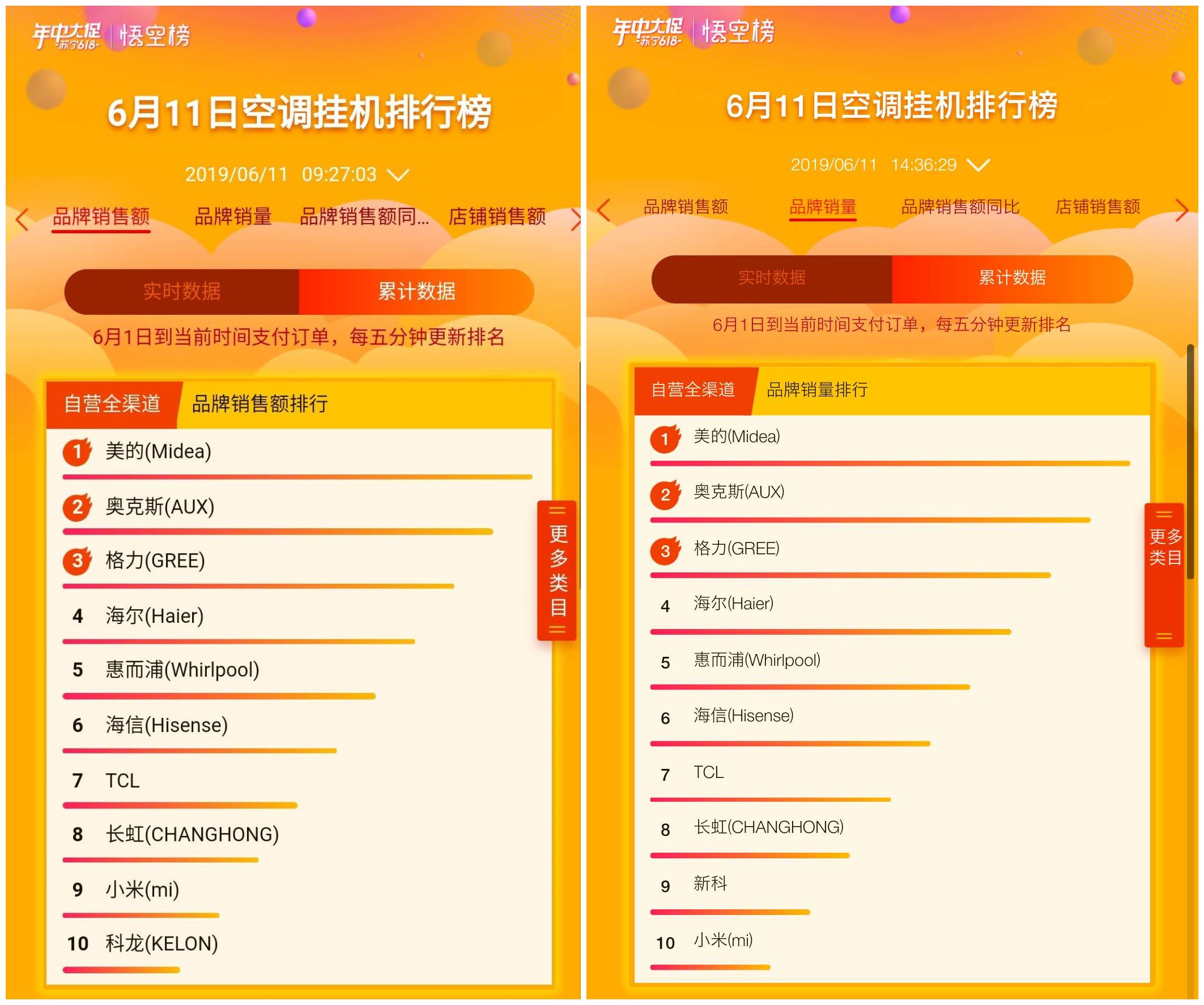 這次事件對于格力與奧克斯品牌到底有無影響,蘇寧易購618的實時悟空榜或許可以說明一些問題。據蘇寧易購618悟空榜顯示,今日(6月11日)上午9點26分58秒空調掛機品牌銷售額排行榜中,奧克斯占據了自營全渠道實時數據的第一位,但時間到了今日(6月11日)下午1點54分44秒,美的與格力已經反超了奧克斯。而后的下午2點58分44秒,奧克斯排名超越格力,但依舊沒有超越美的,下午4點11分27秒奧克斯排名下降一位至第三名。從悟空榜可以看出,受此事件影響,今日美的空調銷售額超越了奧克斯,但格力與奧克斯之間不相上下。
