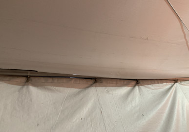 當天氣變冷變濕時,就會出現其他問題。例如,這張照片顯示雨水滲入帳篷車間的帳篷屋頂。