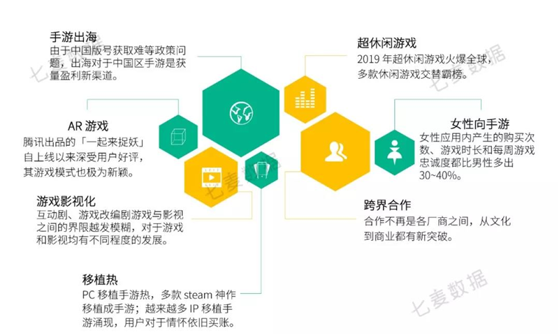 七麥數據總結了“中國上半年手游行業七大關鍵詞”——“手游出?!?、“超休閑游戲”、“AR游戲”、“女性向手游”、“游戲影視化”、“跨界合作”、“移植熱”。通過七大關鍵詞,即可梳理回顧上半年手游行業發生的“大事件”。