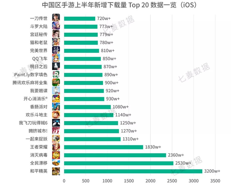 游戲暢銷榜霸榜中并未有某款手游表現突出,「王者榮耀」雖蟬聯霸榜冠軍,但相較于2018年霸榜177天戰績,今年上半年僅霸榜36天;同為騰訊出品的「完美世界」霸榜33天緊隨其后。