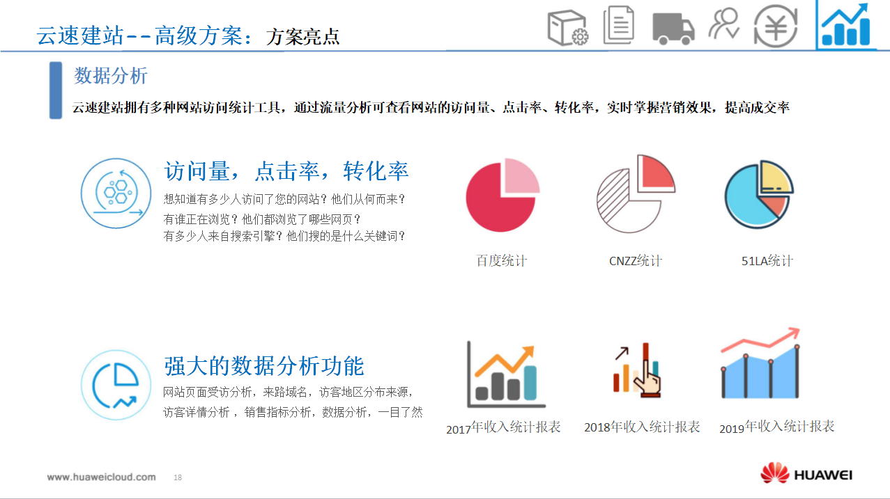 因為獨立建站常常需要涉及諸如購買域名、空間、支付集成、風(fēng)險控制以及后臺的技術(shù)維護等層面,完全不懂互聯(lián)網(wǎng)技術(shù)的中小型企業(yè)難以為繼,往往需要雇傭?qū)I(yè)的技術(shù)人員進行獨立運營,人力和時間成本相對較高。這也是大部分跨境企業(yè)沒有選擇獨立建站的原因,既然有痛點那就一定有賣點,今年以來阿里云、華為云紛紛推出一站式建站服務(wù)用以解決中小型企業(yè)建站難的痛點。