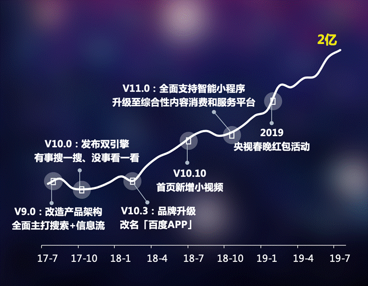 Questmobile上半年報告顯示,今年二季度中國移動互聯網活躍用戶首次下降近200萬,超級App之間的競爭更加激烈。但百度App借助一系列組合拳逆勢實現了2億大關的加速通過。公開數據顯示,今年春節以來,百度App日活半年多增長了近4000萬,春晚效應持續釋放。