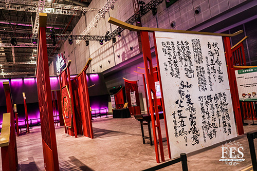 這次展會上,有一個展區的裝飾風格顯得尤為特別,明亮的金紅配色,錯落的樓宇飛檐,充滿了中國古風。這是FES2019上特別設置的中華體驗館,在開展前的宣傳中,便已經引起了玩家們的好奇與關注。