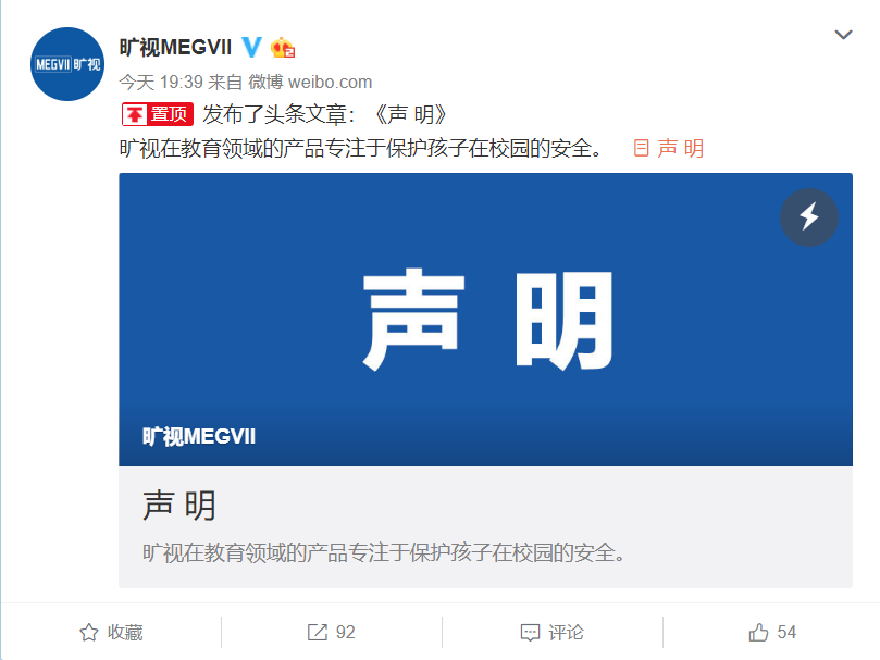 速途網9月2日消息(報道:李楠)今日晚間,曠視MEGVII通過官方微博回應網絡上關于課堂行為分析事件。曠視MEGVII表示其在教育領域的產品專注于保護孩子在校園的安全。