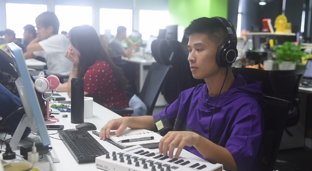位于廣州平云廣場大廈12層,27歲的李東勇坐在電腦前,帶著耳機,正全神貫注的看著電腦屏幕,時而閉目聆聽陷入沉思,時而手指輕敲鍵盤。今年3月,李東勇正式參與到唱鴨的開發。“將樂器從線下搬到線上,讓沒學過樂器的人也能享受一邊彈琴一邊唱歌的樂趣”這是李東勇對自己工作內容和意義的總結。