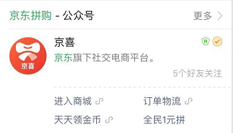 今日,京東將其拼購業(yè)務(wù)更名為“京喜”。目前,在微信中搜索“京東拼購”,其顯示的公眾號已變更為京喜。而在微信購物入口中,雖仍然顯示為京東拼購,但點進(jìn)去后,也已更改為京喜。