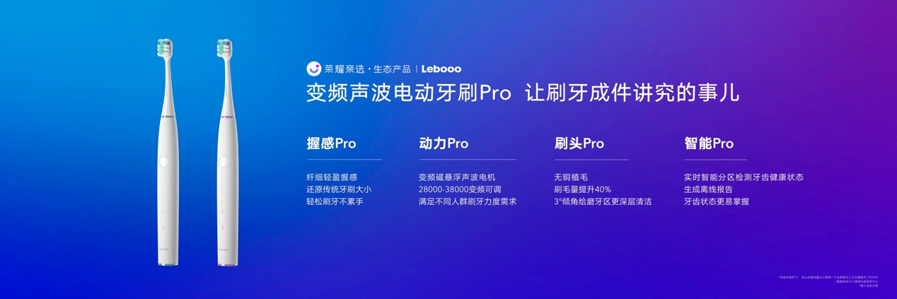榮耀親選生態產品變頻聲波電動牙刷Pro輕盈易握機身、29種變頻可調模式、3°無銅植毛刷頭、智能實時提醒&離線報告,還有冰川藍和櫻語粉兩個配色,首發嘗鮮價169元,10月22日 18:00 榮耀親選、天貓官方旗艦店、VMall商城火爆開售。