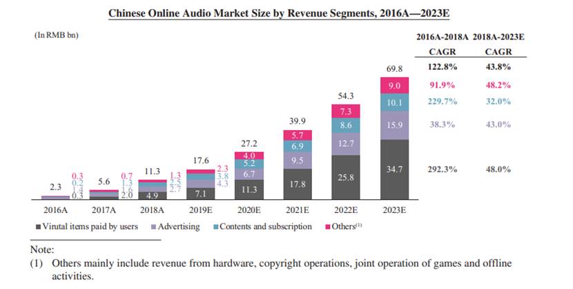 招股書還披露了荔枝的發展歷程:2013年創立后,提出“人人都是播客”,主打音頻創作工具和分享,2016年上線語音直播,2018年累計產生原創音頻節目超過1億期,2019年正式布局海外和IoT場景。
