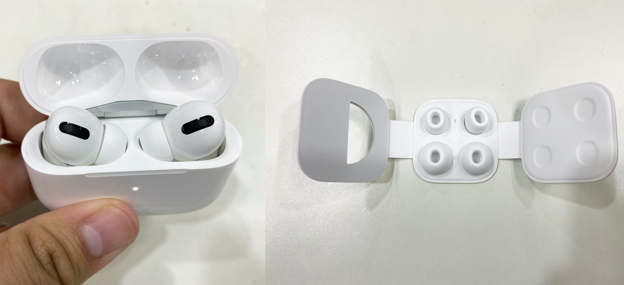 AirPods Pro無論是在包裝盒、充電盒、還是耳機本身,都要比前代AirPods 2大上不少。不僅突出了“Pro”的身份地位,其內部也是別有洞天,容納了更多的配件。