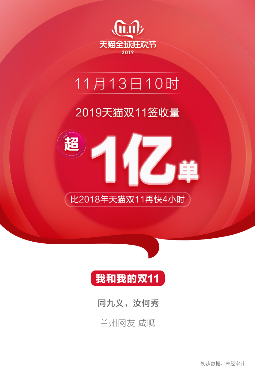 速途網(wǎng)11月13日消息(報(bào)道:李楠)今日,2019年天貓雙11物流再創(chuàng)新速度。菜鳥裹裹數(shù)據(jù)顯示,11月13日10時(shí)左右,2019天貓雙11的第1億個(gè)包裹已經(jīng)送達(dá),比去年提速約4小時(shí),僅用2.4天,創(chuàng)下數(shù)智物流新記錄。