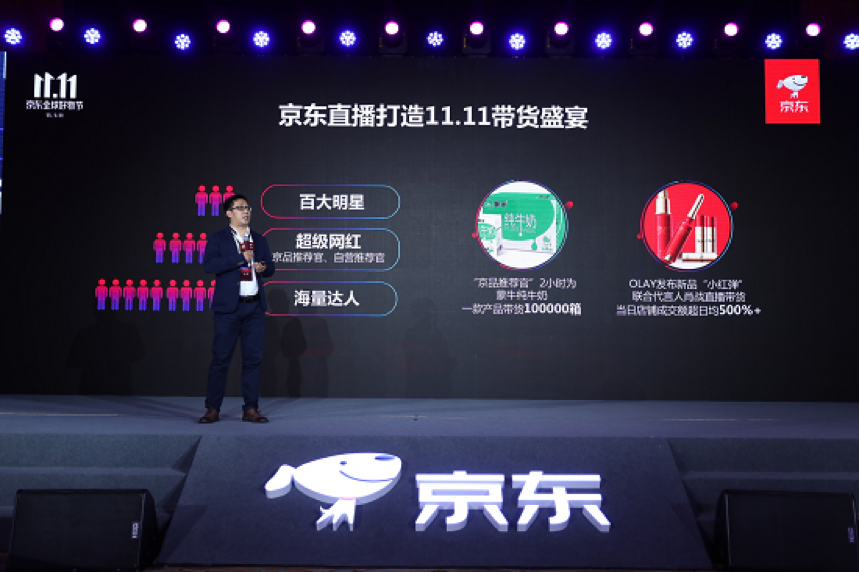 雙11啟動會,是“京品推薦官”的一次公開亮相。京東集團副總裁、京東零售集團平臺業務中心負責人韓瑞宣布,將在雙11期間開啟一場直播狂歡盛宴,邀請百位明星、超級網紅、海量達人進駐京東直播間,為消費者推薦爆款好物。