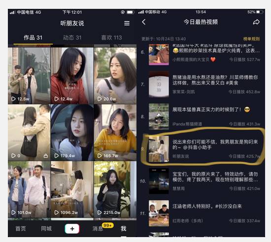 正是通過“加減法”的不斷衡量和取舍,在不到一個月的時間,“聽朋友說”就出了2條爆款內容,最高播放量2000多萬,點贊超90萬,成功占據抖音當日最熱視頻TOP9?!坝眯淖龊脙热?,這一點支持我們從0走到1,也將激勵我們一直向前?!蓖跖蹇偨Y。
