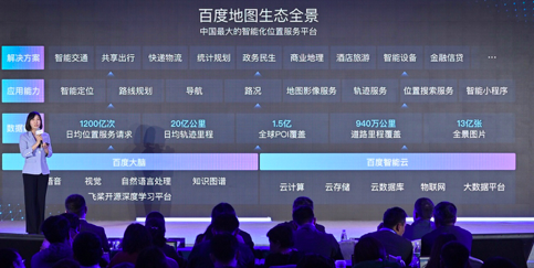隨后,百度地圖事業部總經理李瑩全面介紹了AI地圖的成績,并首次公布了新一代人工智能地圖生態全景。