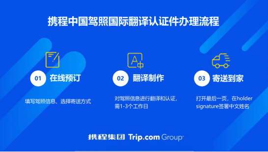 目前,登錄攜程平臺用車板塊的境外租車頻道,有境外自駕需求的游客,線上填寫提交中國駕照信息,1個-3個工作日后,就可以收到上述國際翻譯認證件。