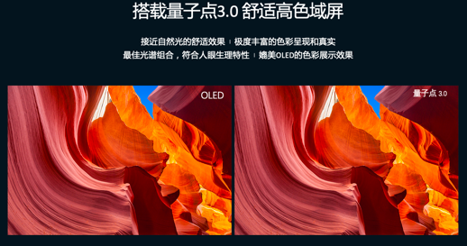 而搭載了其最新發布的量子點3.0舒適高色域屏樂視超級電視G Pro系列,不僅能夠提供接近自然光的舒適效果,還有極度豐富的色彩呈現和真實,以及最佳光譜組合符合人眼生理特性能夠媲美OLED的色彩展示效果。
