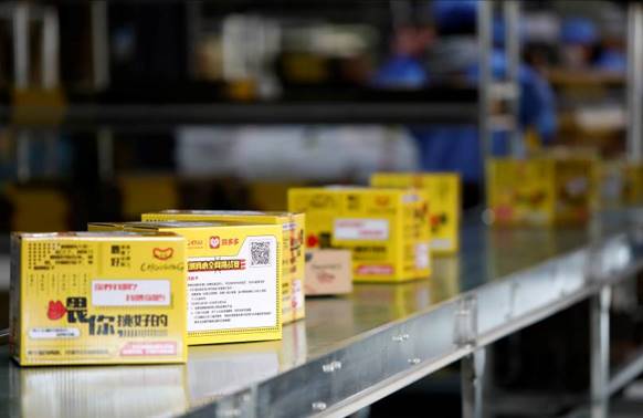 “現在每天隨時發貨,量夠了就裝車,這樣的廂式貨車一天要來好幾批”,真心食品電商總監張輝指著眼前兩輛正在整齊碼放快遞的車說到,“現在剛好是拼多多的年貨節,發貨量比雙11還要大”。
