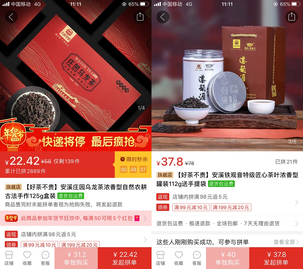 據悉,目前正值拼多多年貨節,平臺不僅為安溪鐵觀音開辟了專區特賣,還在拼多多APP上同步開設了“安溪館”。當地130多家安溪鐵觀音認證茶企未來還將陸續進駐平臺,進一步提高品牌知名度、擴大市場份額。