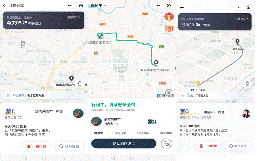 同時,通過微信內(nèi)的行程分享頁面,乘客以及乘客的親友均可直接使用一鍵報警或者聯(lián)系客服,這將能夠更有效地保障合乘雙方的安全。