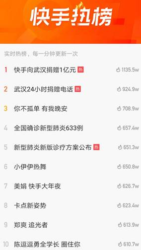 人民日報等主流媒體于1月23日發布推送,點贊了快手的捐款行為:“老鐵們,必須給快手贊了!快手科技向武漢捐贈1億元,用于抗擊疫情!”