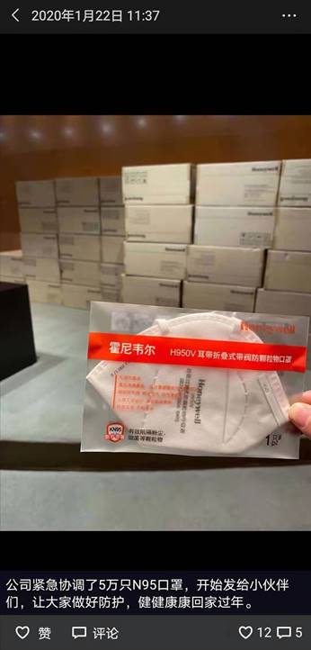 張近東表示:“受新型肺炎疫情影響,武漢的外地員工選擇留在當地過年,人力資源部要做好后勤保障工作,讓異鄉過年的員工感受到家的味道??偛恳褳閱T工全部發放N95口罩,各大區也務必落實發放到位。守護用戶需求的同時,更要守護自己和家人的健康。”