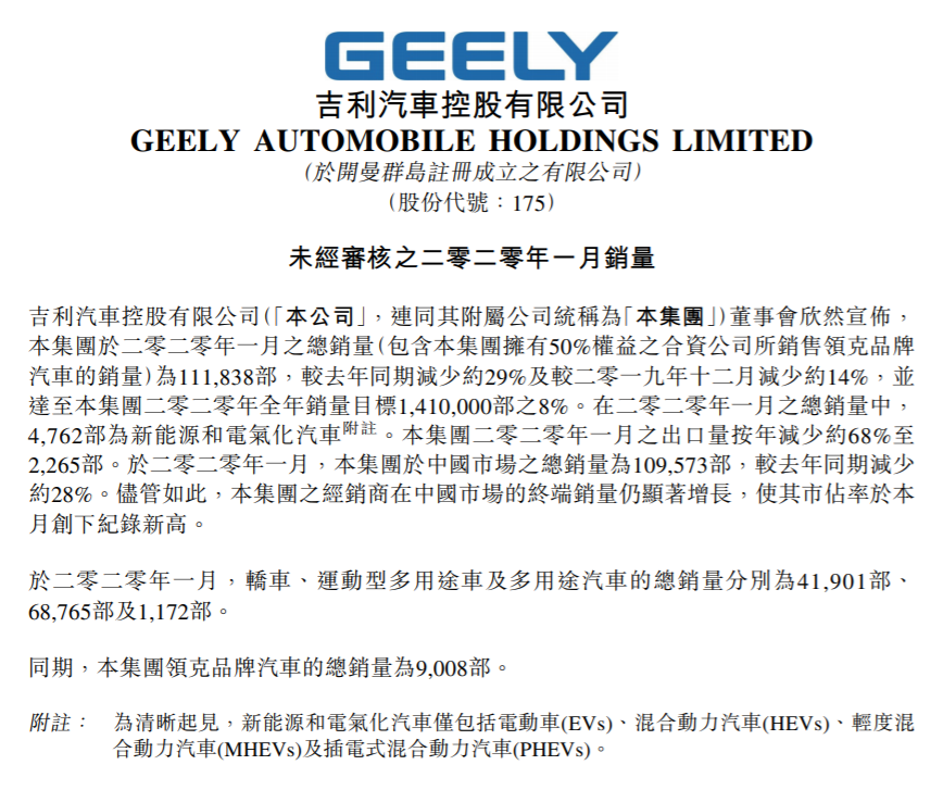 吉利汽車:1月份汽車總銷量為11.18萬部,同比下降29% 仙雯 ? 2020年2月13日 17:51 ? 快訊, 汽車 速途網訊 今日,吉利汽車發布公告稱,1月份汽車總銷量為11.18萬部,同比下降29%。 吉利汽車 贊 (0) 仙雯 0 生成海報 江淮汽車:1月份汽車銷量為3.73萬輛,同比下降30.19% 上一篇 2020年2月13日 17:45 廣汽集團:1月份汽車銷量總計17.63萬輛,同比下降15.94% 下一篇 2020年2月13日 17:54