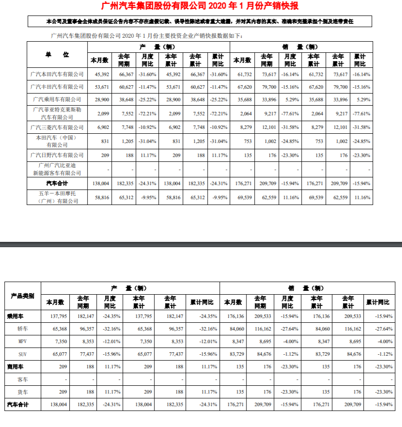 廣汽集團:1月份汽車銷量總計17.63萬輛,同比下降15.94% 仙雯 ? 2020年2月13日 17:54 ? 快訊, 汽車 速途網訊 今日,廣汽集團發布公告稱,1月份汽車銷量總計17.63萬輛,同比下降15.94% 。 廣汽 贊 (0) 仙雯 0 生成海報 吉利汽車:1月份汽車總銷量為11.18萬部,同比下降29% 上一篇 2020年2月13日 17:51 雷軍直言小米10系列是“重新創業”首款新品,國內手機市場二三季度將反彈 下一篇 2020年2月13日 18:37