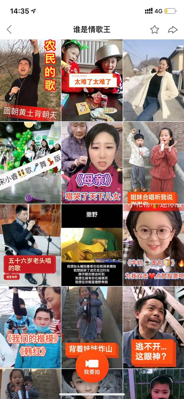 “你炸了我的山,推我過忘川……”情人節(jié)期間,在快手平臺(tái)爆火的情歌《炸山姑娘》被數(shù)以萬計(jì)的老鐵翻唱,爭奪“情歌王”稱號(hào)。2月,快手與QQ音樂聯(lián)合發(fā)起“誰是情歌王”線上翻唱活動(dòng),任何一位熱愛音樂的老鐵,只需拍攝翻唱視頻,選擇標(biāo)簽“誰是情歌王”上傳,即可參與活動(dòng)。