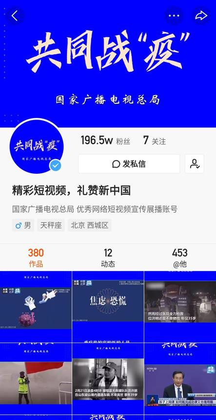 疫情當(dāng)前,多一份對疫情的了解,就會多一份安全保障。2019年9月,廣電總局在快手開通了優(yōu)秀網(wǎng)絡(luò)短視頻宣傳展播賬號,目前粉絲達(dá)196萬。快手在打好自身的疫情防控狙擊戰(zhàn)的同時,主動承擔(dān)社會責(zé)任,在廣電總局的統(tǒng)籌下,開展了“共同戰(zhàn)‘疫’”視頻宣傳活動,重點資源位突出推薦,積極發(fā)揮快手平臺的流量、技術(shù)和資金優(yōu)勢,全力傳播全國人民守望互助的正能量內(nèi)容,及時傳遞疫情的準(zhǔn)確信息,普及科學(xué)防護(hù)權(quán)威信息,累計發(fā)布疫情防控短視頻200余條,播放量近5億次。