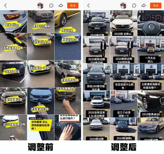 其中,銷售人員寶強入駐前粉絲剛破1w,賬號原來封面混亂、不吸睛、活躍度低、內(nèi)容質(zhì)量低。通過快說車線下閉門集訓(xùn)指導(dǎo)短視頻技巧及封面、內(nèi)容等優(yōu)質(zhì)作品要素,如今封面統(tǒng)一、標題醒目、每日固定高峰時間發(fā)布作品、說車評測更具專業(yè)性,產(chǎn)生了13個爆款作品。現(xiàn)在粉絲達到4.6w,平均每月通過快手集客20人左右。像寶強這樣的一線銷售人員也因此成為一汽大眾的紅人,經(jīng)常被一汽大眾領(lǐng)導(dǎo)在群里點名表揚。