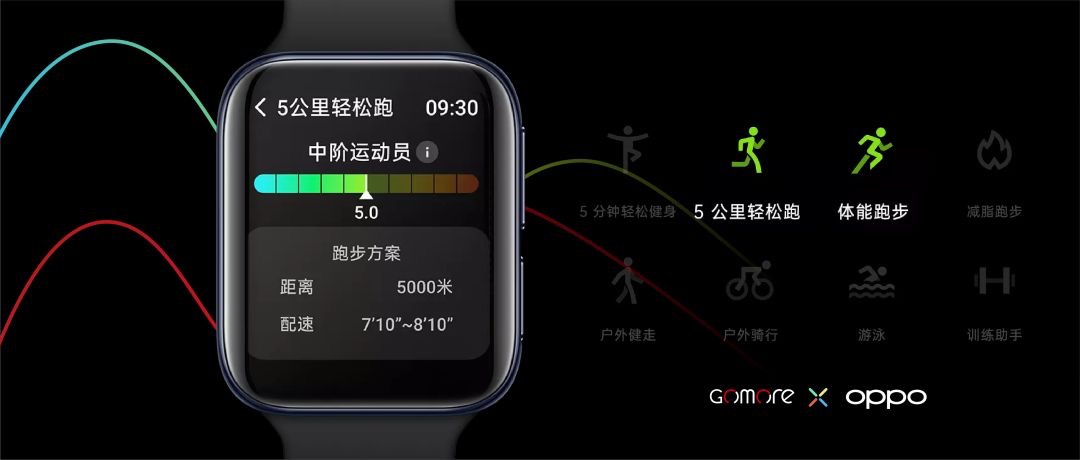 OPPO Watch在健康功能方面,與國家體育總局體科所獨家合作伙伴GoMore聯手,共同用最為專業的科學理論與技術融合,共同將OPPO Watch打造成為一個全天候監控體能的“健康衛士”、一個可以隨身攜帶的“運動教練”。?