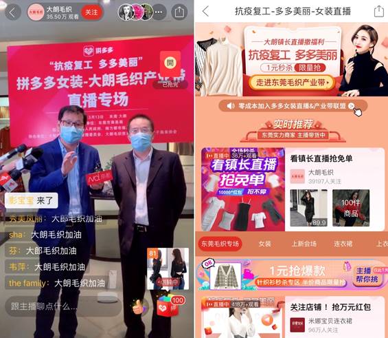 作為拼多多聯合廣東產業帶復工線上大聯播的首站,大朗毛織產業帶“拼交會”共吸引超過2000家企業參與,截至下午5時線上已接待消費者1036萬人次。