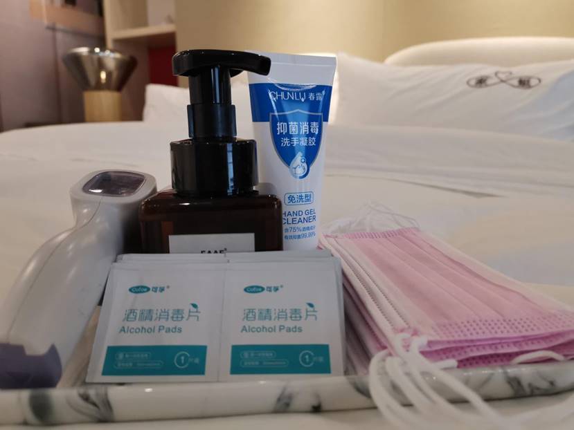 - 前臺:每位賓客嚴格執行體溫檢測及健康登記;消毒房卡采用一次性密封袋包裝、辦理完成提供免洗消毒洗手液;員工每2小時洗手消毒;采取間隔排房;