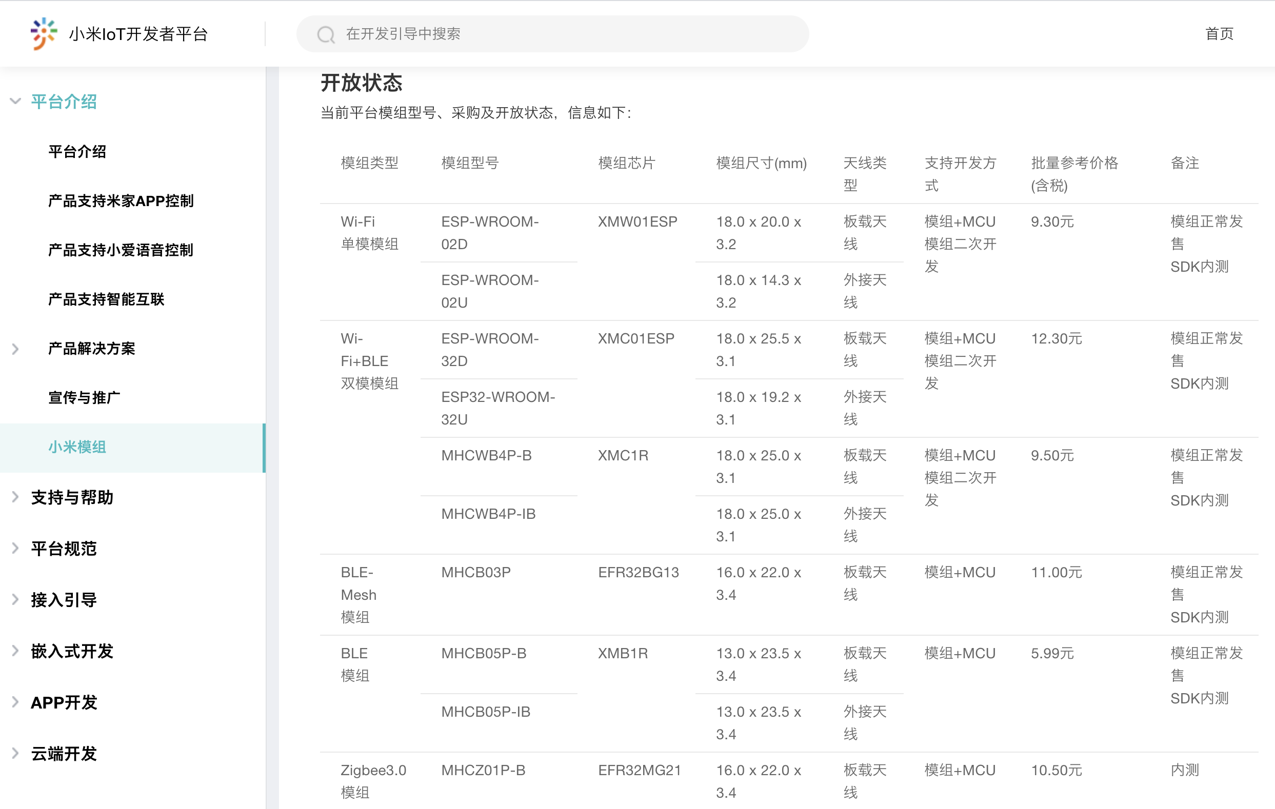 如今,根據小米IoT開發者平臺官方數據顯示,目前小米IoT連接智能設備已經超過2.1億臺。同時該平臺上也提供了Wi-Fi、BLE等多種放入接入小米IoT平臺的模組,其中不乏已發售和內測的產品,相比手機芯片的低調,IoT相關硬件的開發卻是熱火朝天。?