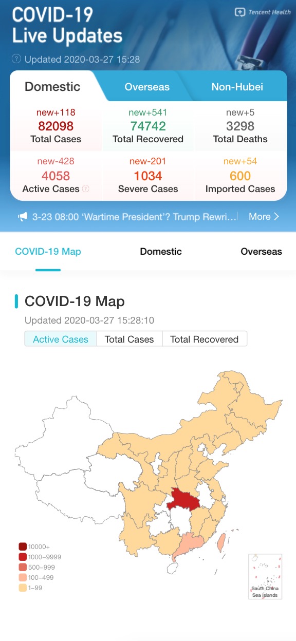 速途網(wǎng)3月27日訊(報(bào)道:喬志斌)今日,騰訊健康新冠疫情模塊國際版(TH_COVID19_International)正式開源,為全球抗擊新冠肺炎疫情貢獻(xiàn)科技力量。過去兩個(gè)月,通過“騰訊健康”小程序,新冠疫情模塊為中國用戶提供了超過60億次的疫情動(dòng)態(tài)查詢服務(wù),及時(shí)、準(zhǔn)確、直觀的疫情數(shù)據(jù)統(tǒng)計(jì),為民眾正確抗疫提供了必要的信息。