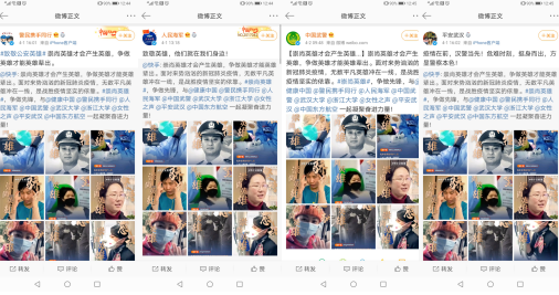 此次系列活動,快手還聯合了國家衛生健康委政務新媒體平臺“健康中國”、公安部新聞宣傳局“警民攜手同行”、中國長安網、中國警察網、人民海軍、中國火箭軍、人民武警、中國軍視網、全國婦聯“女性之聲”、武漢大學、浙江大學、山東省衛生健康宣傳教育中心“健康山東”、平安武漢、荊州公安、北京市朝陽區融媒體中心“朝陽群眾”、中國東方航空、武漢市中心醫院、西安大興醫院、濟寧醫學院附屬醫院等19家機構制作人物故事海報,這其中有奮戰在一線救死扶傷的醫務工作者;有恪盡職守,保衛平安的公安干警;有置身于萬米高空,與城市守望相助的民航乘務人員;更有堅守最后一道戰“疫”防線的社區工作者。