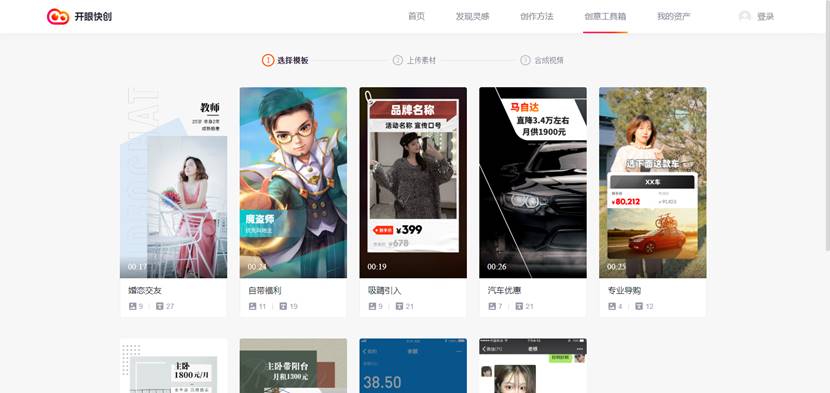 為幫助合作伙伴實現創意的規模化生產和個性化呈現,“開眼快創”提供的創意工具箱可以幫助用戶智能制作模板視頻和微電影。