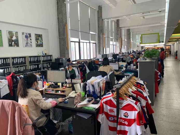 ▲上海美度紡織品有限公司是國內乃至全球最大的球衣定制商之一,2019年銷售額達到3.5億元,超過95%的市場份額在海外。4月28日,美度在拼多多售出了其面向新電商市場的第一件自有品牌運動訓練服。(安舜攝)