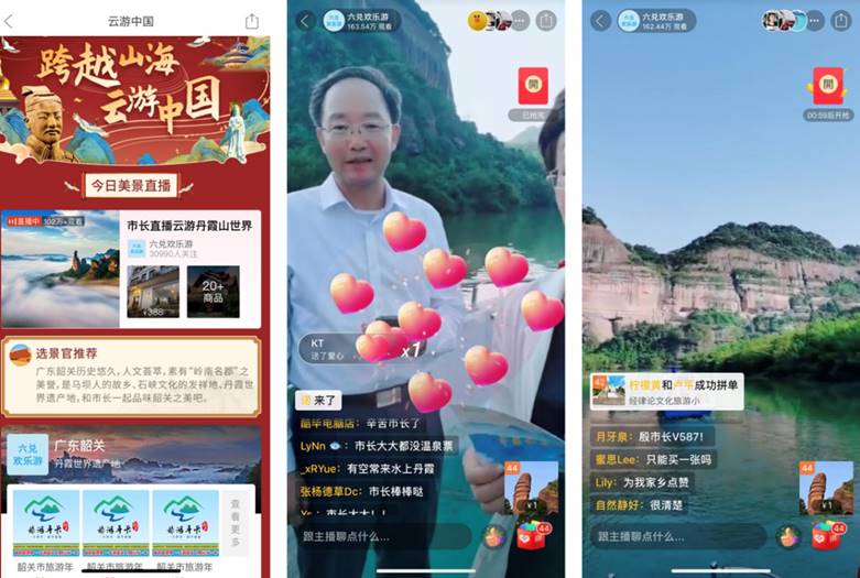 協議簽署后,拼多多大型旅游直播“云游中國·韶關站”活動也正式開啟,市長殷煥明和副市長李欣化身“金牌導游”,在拼多多直播間推介當地著名的丹霞山風景區,并現場派發出10000張酒店折扣優惠券和60000張“1元景區門票”,累計吸引全網觀看人次超455萬。