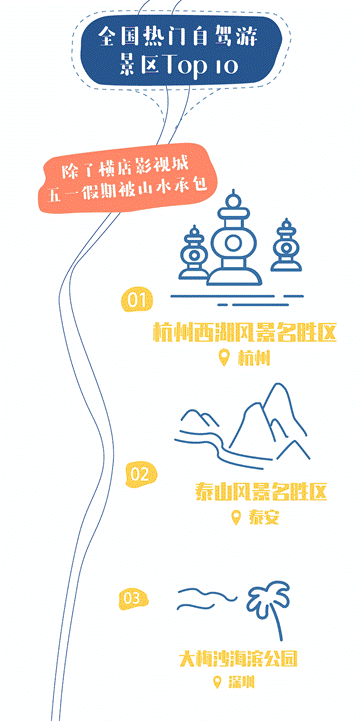 5月1日當天,全國自駕游熱門景區主要分布在祖國的東部地區,熱度最高的前10位中有9個在南方,浙江省占據5席。杭州西湖風景名勝區最受游客歡迎,排名第二的泰山風景名勝區則是唯一上榜的北方景區。其他熱門景區還有深圳大梅沙海濱公園、鳳凰古城、千島湖風景區、南澳島生態旅游區、北海銀灘、橫店影視城、西塘古鎮景區、烏鎮風景區。可以看出,除了自然戶外景點,兼具山水風光和人文氣息的各色古鎮、一次游覽便能“穿越”多種景觀的橫店影視城也受到人們歡迎。
