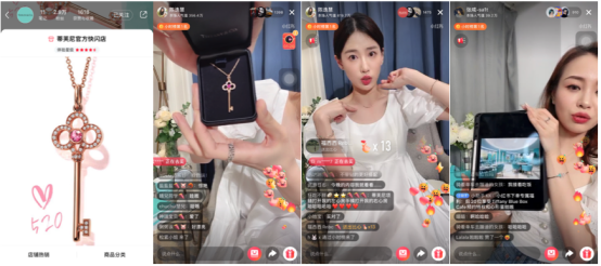 快閃店上線后,包括大睿睿、三木三木呢等在內的6名小紅書博主發布Tiffany新款項鏈的分享筆記,5月5日至7日,小紅書時尚博主陳逸慧、AmandaX、張咸連續3天進行了3場Tiffany專場帶貨直播,其中,博主陳逸慧直播帶貨客單價超過1.5萬元,近20%的直播間觀眾被“種草”,進入了商品頁面。