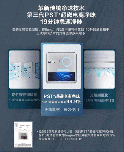 后疫情時代,食物安全更加受到重視,美的冰箱新品展現出來的凈味殺菌實力不容小覷。其內部的“PST+超磁電離凈味”裝置可以快速將空氣中的異味與細菌分子消滅分解。值得一提的是,經過全球質量認證機構SGS的認證,該臺冰箱的除菌率高達99.99%,能夠更好呵護家人的飲食健康。
