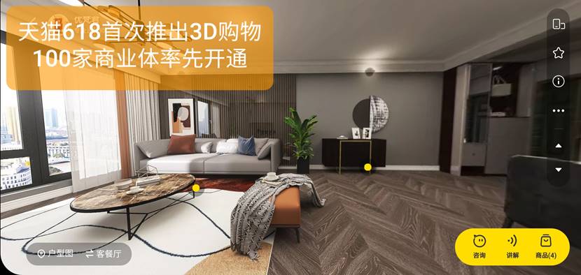 為降低商家搭建3D場景的門檻,阿里旗下“躺平設計家”,還免費為商家和設計師提供3D設計工具與渲染服務,并打通淘系平臺購買鏈路,幫助商家敲開3D時代數字化世界大門。