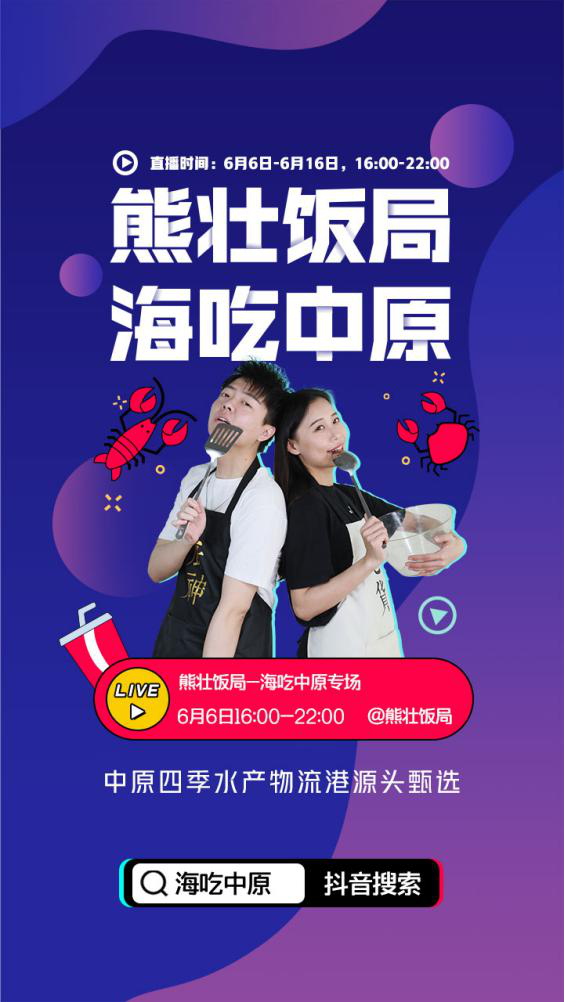 6月6日至6月16日,每天下午16時至晚間22時,聚焦“熊壯飯局”直播間(xiongzhuang001),11天11場直播,數(shù)十位不同領(lǐng)域名人嘉賓輪番助力,線下名人互動、線上達人連麥,與粉絲暢聊中原水產(chǎn)美食,助力受疫情影響的中原水產(chǎn)快速復(fù)蘇。