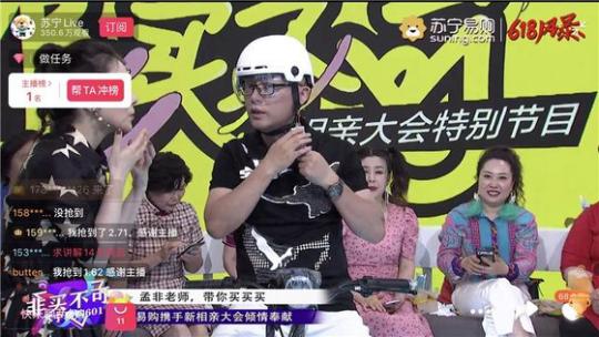 百萬用戶彈幕齊發(fā):“每天都過蘇寧618”、“總裁爸爸別哭”、“孟爺爺再來一段脫口秀”,更有甚者:“孟爺爺免單我要,女朋友我也要,幫我都解決一下啊!”